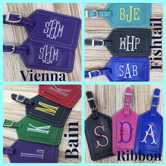 Monogrammed luggage tag, leather luggage tag